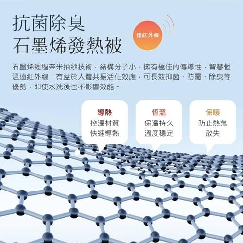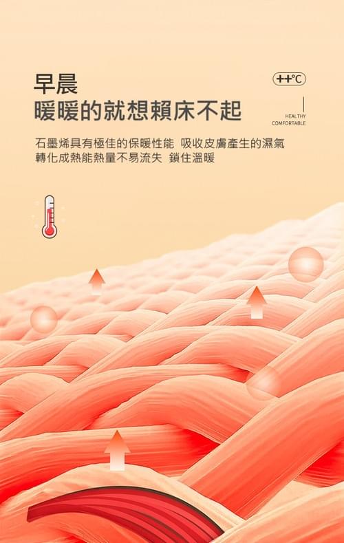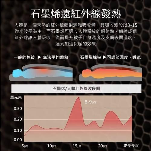 ★石墨烯會釋放感應人體波長, 無需插電,保持被窩內最舒適的溫度。