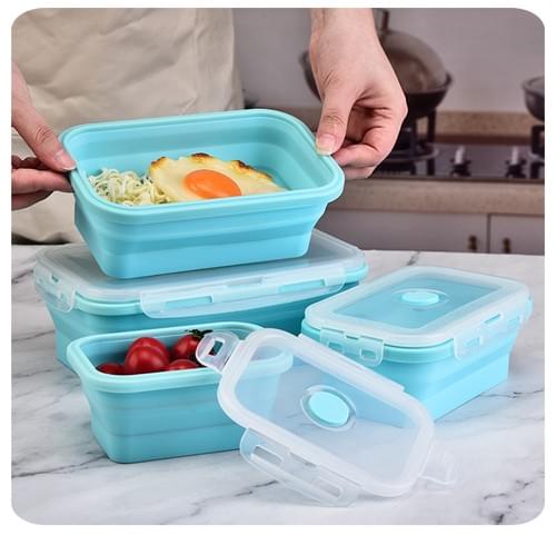 可折疊硅膠(矽膠)保鮮盒/飯盒四件套(袋裝)-長方形款