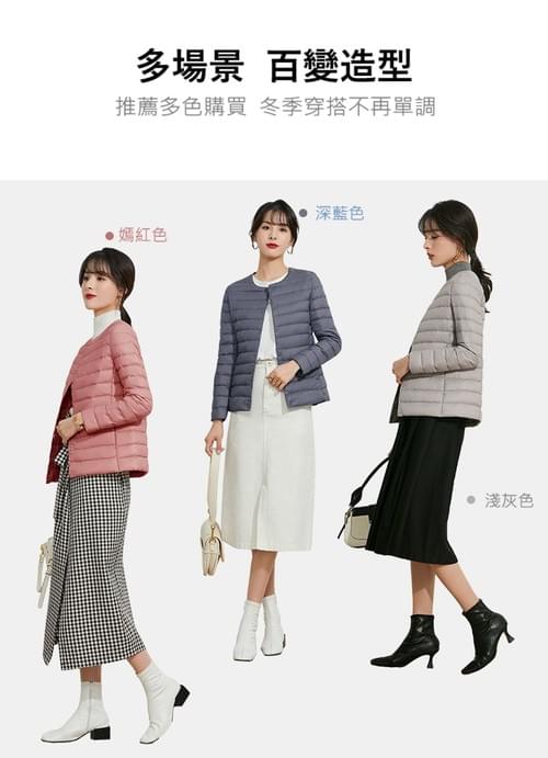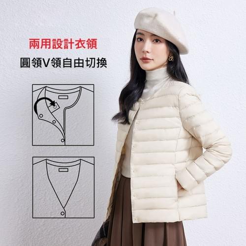 新款兩種穿法圓領 vs V領秋冬輕薄羽絨外套--甄選高蓬鬆度白鴨絨